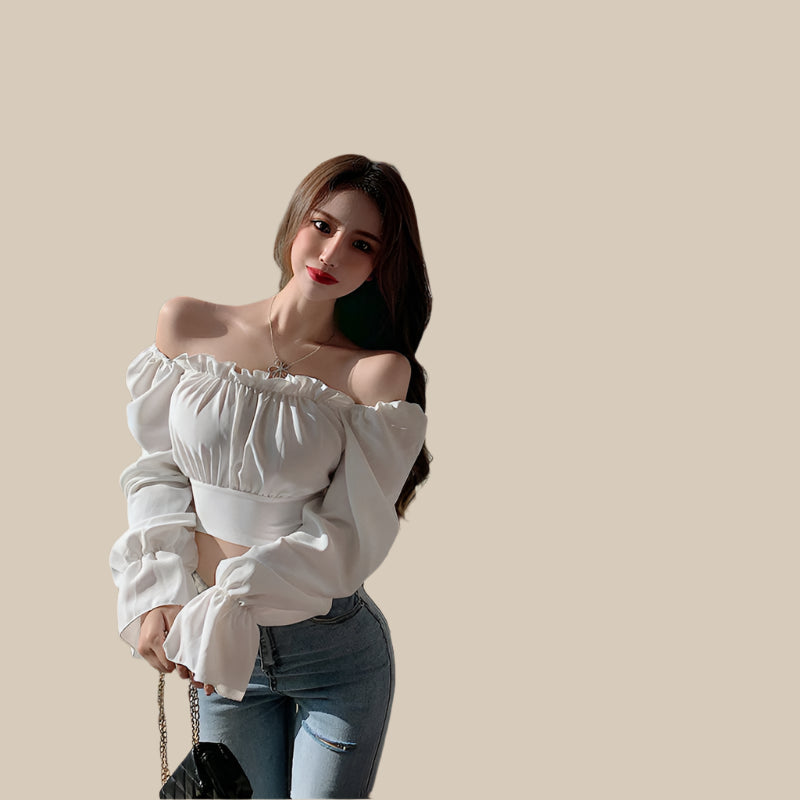 Onze Korte Blouse met Strikmouwen is het perfecte item voor wie houdt van verfijnde details en een stijlvolle uitstraling. De cropped lengte en open schouderstijl geven de blouse een moderne, vrouwelijke touch, terwijl de striksluitingen aan de mouwen zorgen voor een speels accent.